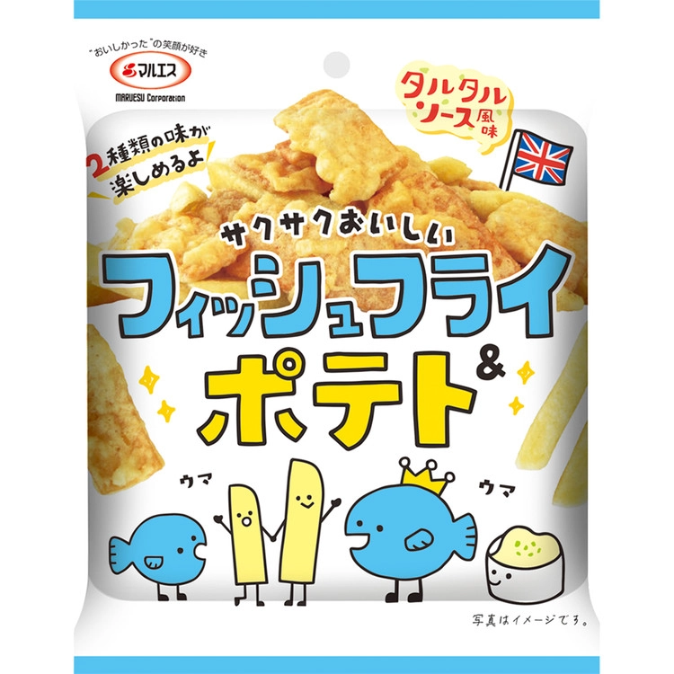 가공어육과 감자전분, 타르타르 소스를 활용해 만든 피쉬앤칩스 스낵 입니다. 한번에 2가지 맛을 즐길 수 있습니다.